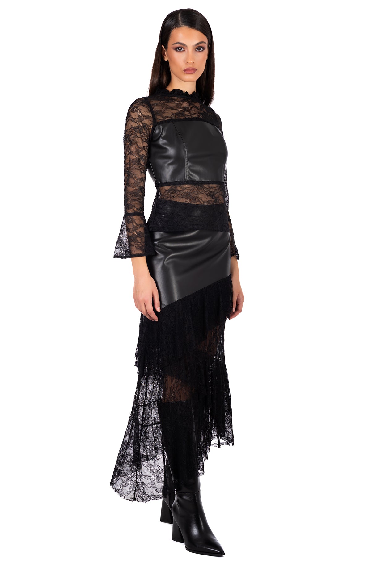 • Combination of faux leather and lace